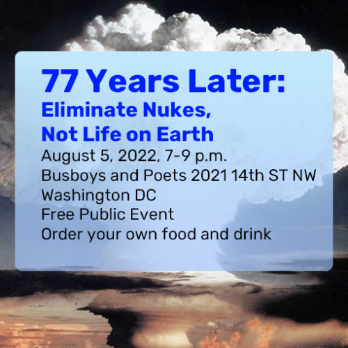 RSVP HERE  https://actionnetwork.org/events/77-years-later-eliminate-nukes-not-life-on-earth/